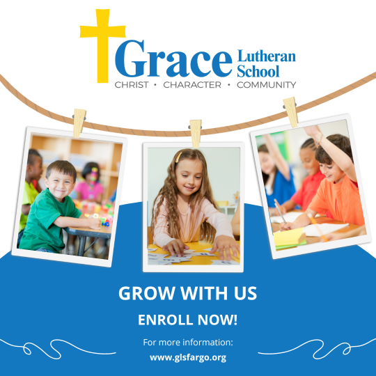 Grace Lutheran School serves children from Pre-Kindergarten (4 years old) to 8th Grade and provides Christ-centered learning for Christ-centered living to strengthen faith, to love and serve church and community to the glory of God.