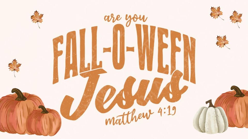 Join us for Fall-O-Ween Jesus. Families can stop in with their kids for candy bars with Scripture, caramel apples, and fun treats — plus an opportunity for kids to receive a blessing and enter a door prize for a chance to win a free kids Bible