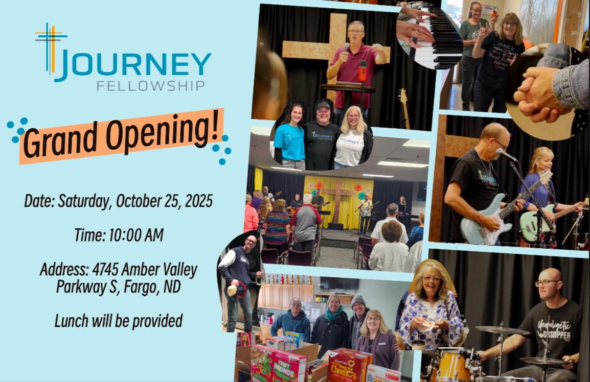 You’re invited to the grand opening of Journey Fellowship’s new space! Join for the service and stay for the free chili lunch after!